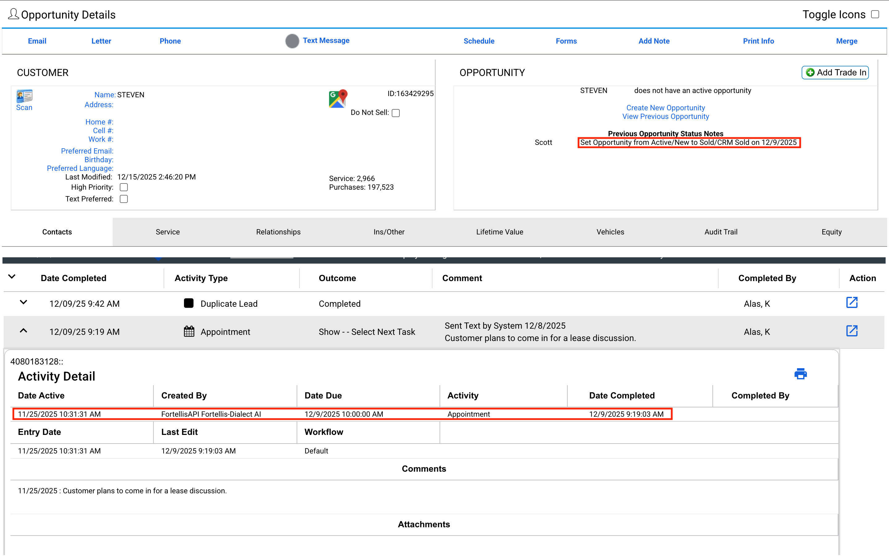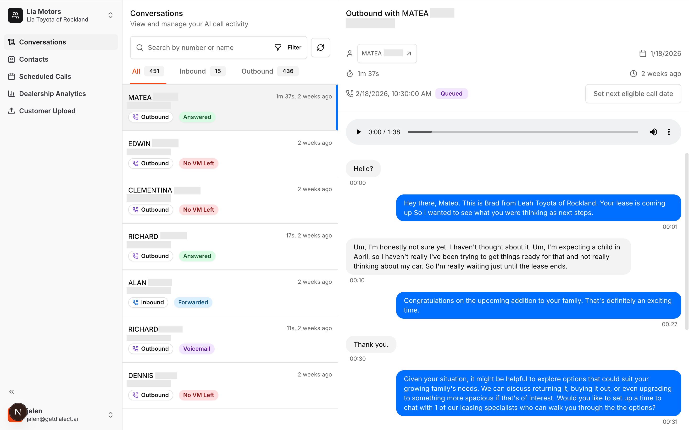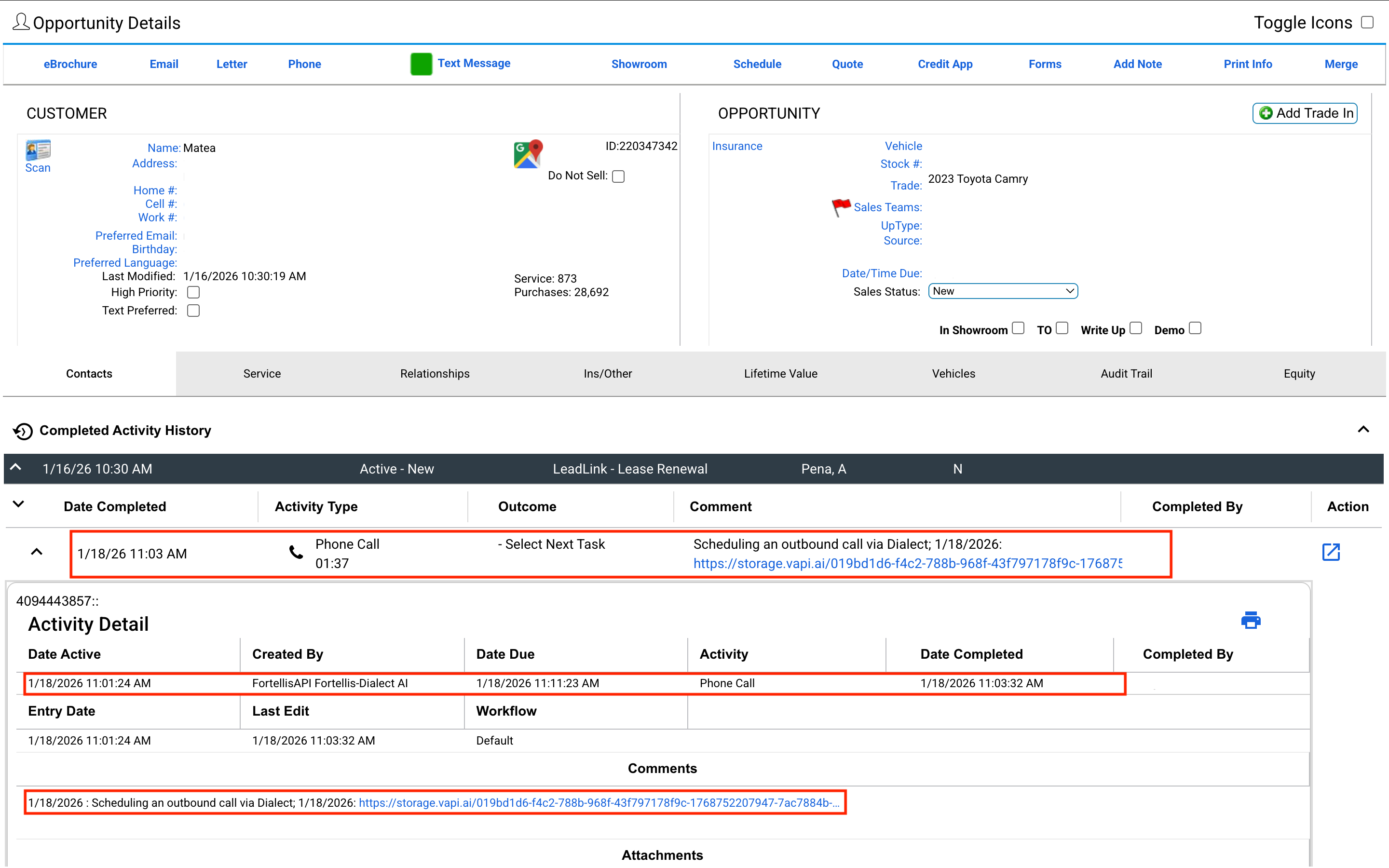 Every conversation is logged and synced to your CRM or DMS. Full audit trail and no duplicate entry.